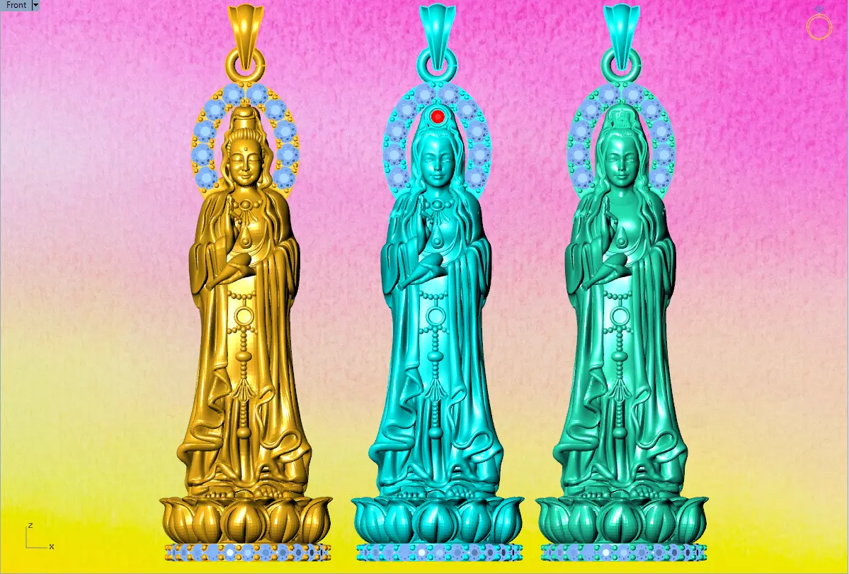 Buddha Guan Yin pendant.The pendant is designed delicately and meticulously by details with Rhino Matrix, Zbrush software.Suitable for making jewelry of gold, silver, platinum ...You can ask us questions if you have any questions. We will support and reply as soon as possible.