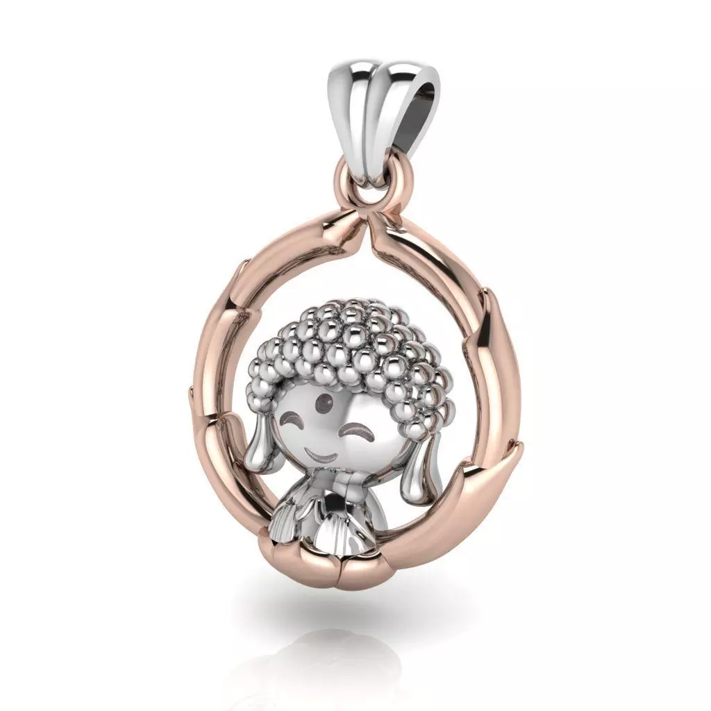 Jewelery Buddha Kid Pendant with bail. *Model available in STL format, OBJ, 3DM. * Geometry healed, the model is all fixed, so can be used for prototyping right away. Made in Rhino, Matrix, Blender, prepared for 3d printing in Magic Materialize. The pendant is solid. High quality of 3d model. If you want different files format feel free to ask