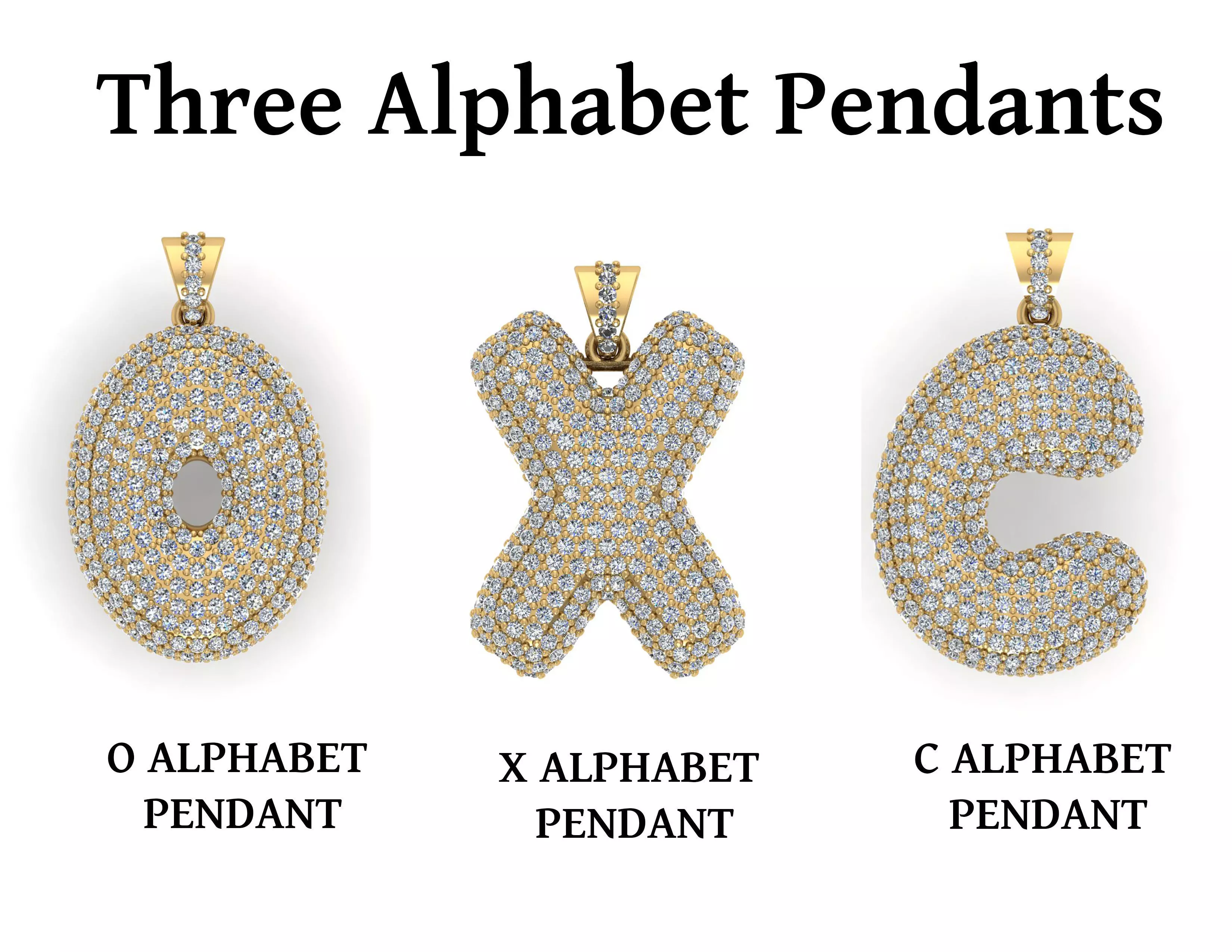 Alphabet O:• Size: 31.90• Gold Weight: 14 KT 6.5 GM 14 KT 7.8 GM• Diamond Weight: 1.30x1.30=277 (2.77 CT )• File Formats: STL for printingAlphabet X: