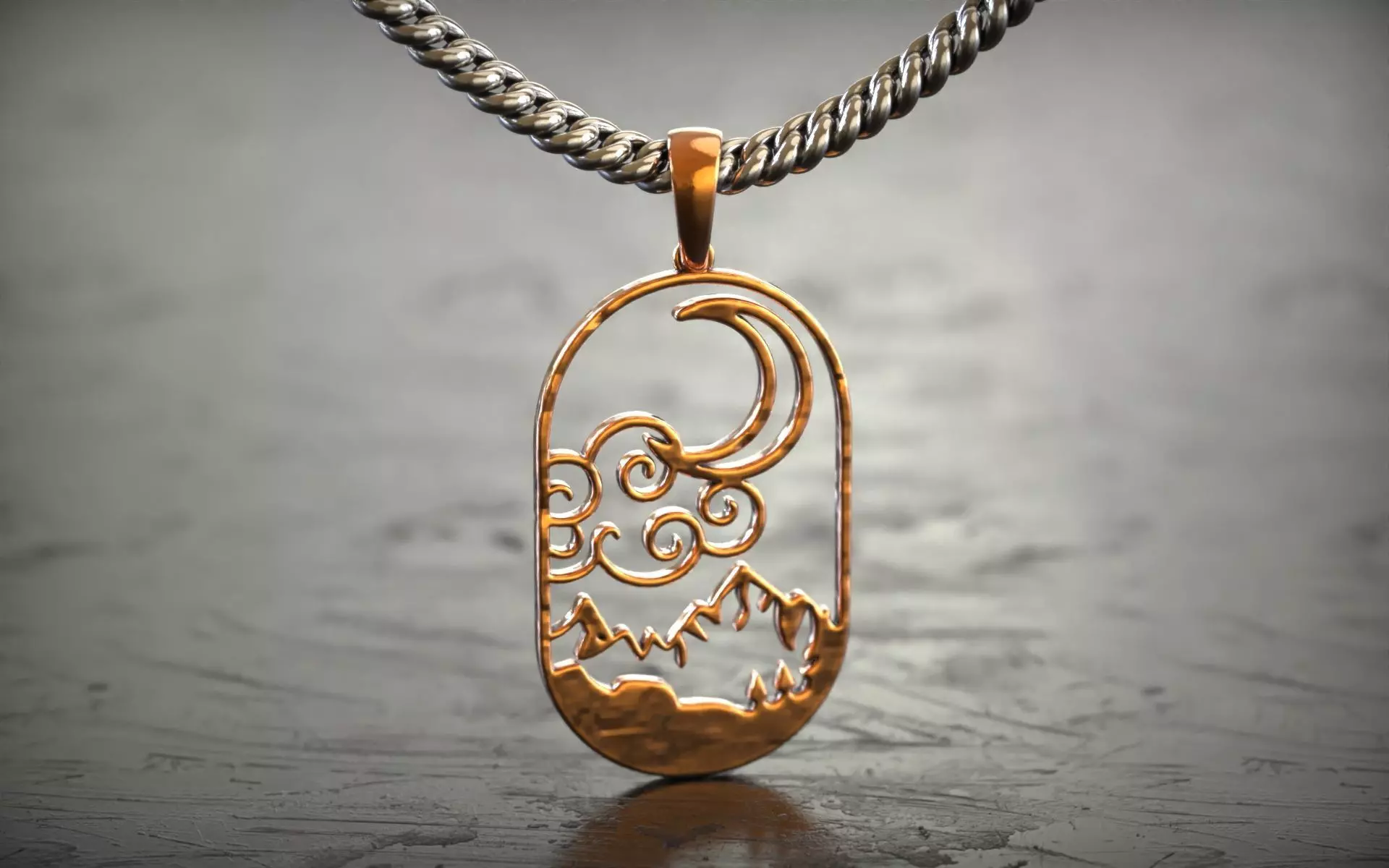 Elevate your jewelry collection with this beautifully detailed Celestial Mountain Pendant. This 3D model features a minimalist yet intricate cut-out design, blending the serene imagery of a crescent moon, stylized swirling clouds, and a rugged mountain silhouette. Perfect for those who love nature-inspired, bohemian, or celestial aesthetics.