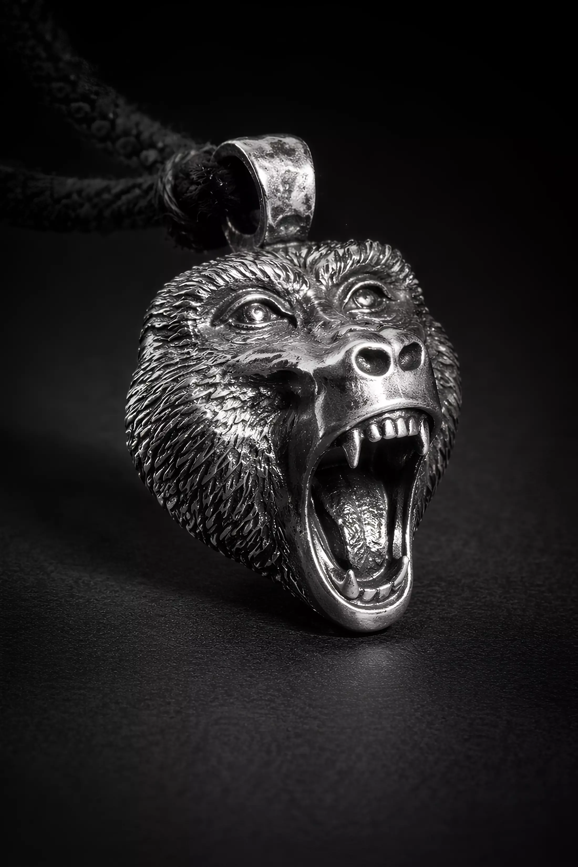 Unleash the beast with this high-intensity Chimpanzee 3D Model. This pendant is a masterclass in texture and expression, capturing a Silverback in a moment of primal dominance. The intricate fur patterns flow naturally into high-tension facial features, leading to a wide-open jaw that showcases detailed fangs and a realistic tongue. Optimized for high-end artisan jewelry, this design is built to excel in sterling silver or blackened steel, where a heavy patina can be used to bring out the incredible depth of the fur and the ferocity of the expression.