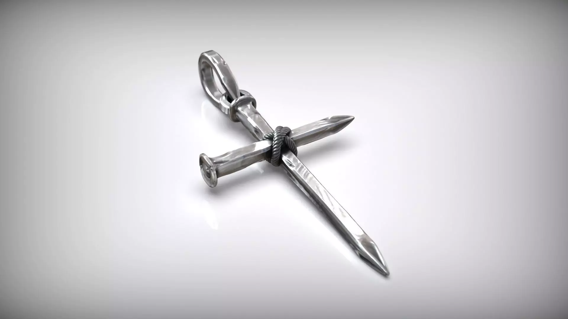 This detailed 3D model features a Christian Gothic-style cross made from two forged nails, tied at the center with a twisted rope. The design reflects symbolic craftsmanship, evoking themes of sacrifice, strength, and spiritual heritage. The pendant is ideal for use in jewelry visualization, 3D printing, religious-themed artworks, or digital product design.Modeled with precision and clean topology, the asset includes both single and paired pendant variants. The surface finish mimics polished hammered metal with subtle imperfections, giving the piece a realistic and artisanal look.