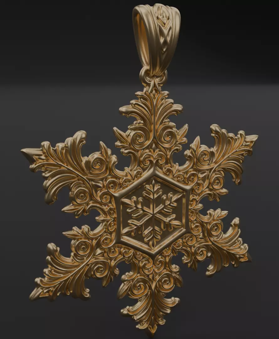 This exquisitely crafted snowflake pendant features an elegant baroque-inspired ornamental design, blending winter aesthetics with luxurious artistic detailing. Every swirl, curve, and carved pattern is meticulously sculpted, creating a symmetrical snowflake that resembles fine jewelry craftsmanship.