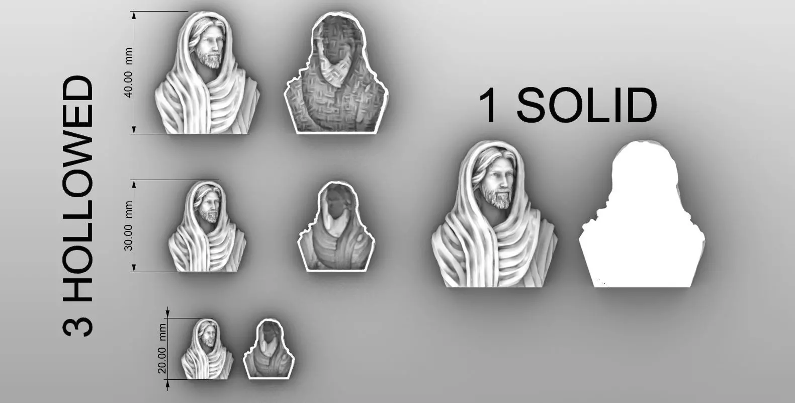**DIJE DE CRISTO EMAUS. ESTOS 4 MODELOS LOS CUALES SON 3 CON HUECO CADA UNO TIENE UN ANCHO DE PARED DE 6 MM Y ENCONTRARAS UN MODELO TOTALMENTE SOLIDO PARA OTROS USOS. EN EL ARCHIVO DE RHINO TAMBIEN PODRAS VER UNOS TAPAS PARA CADA MODELO ESTAS TAPAS CONTIENEN PIEDRAS DE 1.5 MM. ESPERO SEA DE GRAN USO ESTE MODELO, DISFRUTENLO!!. DE ANTE MANO AGRADECER POR SU COMPRA, SIN DUDAR PODRAN CONTACTAR CONMIGO.
