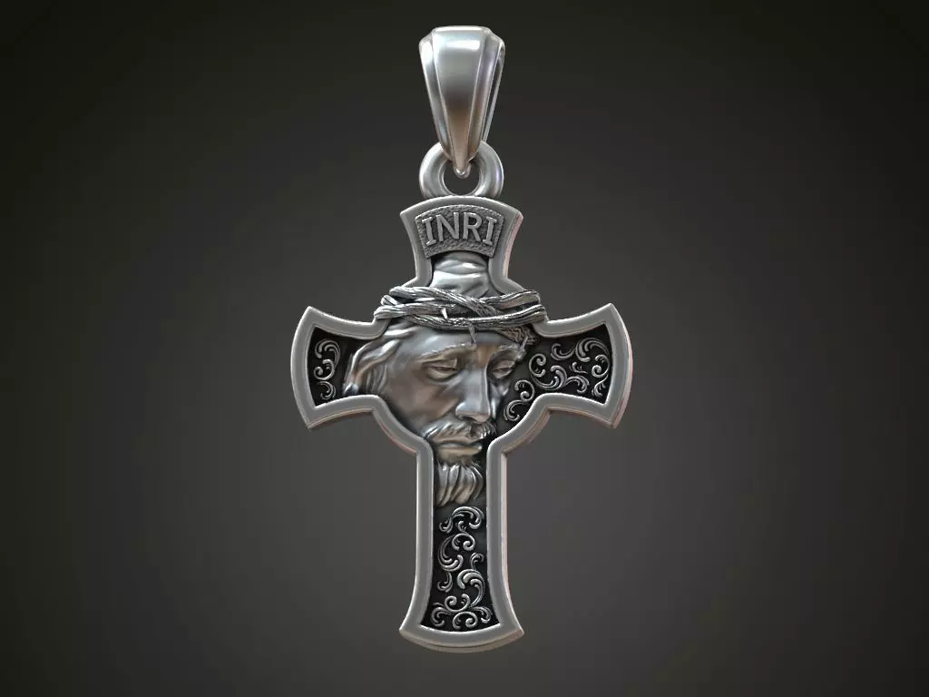 Ukrainian prayer cross pendant catholic Jesus face 3D print model