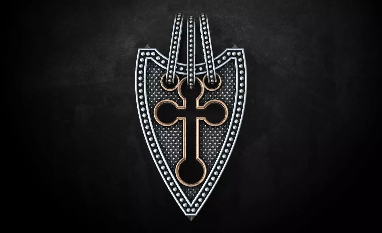 Cross shield sterling silver and gold mens necklace