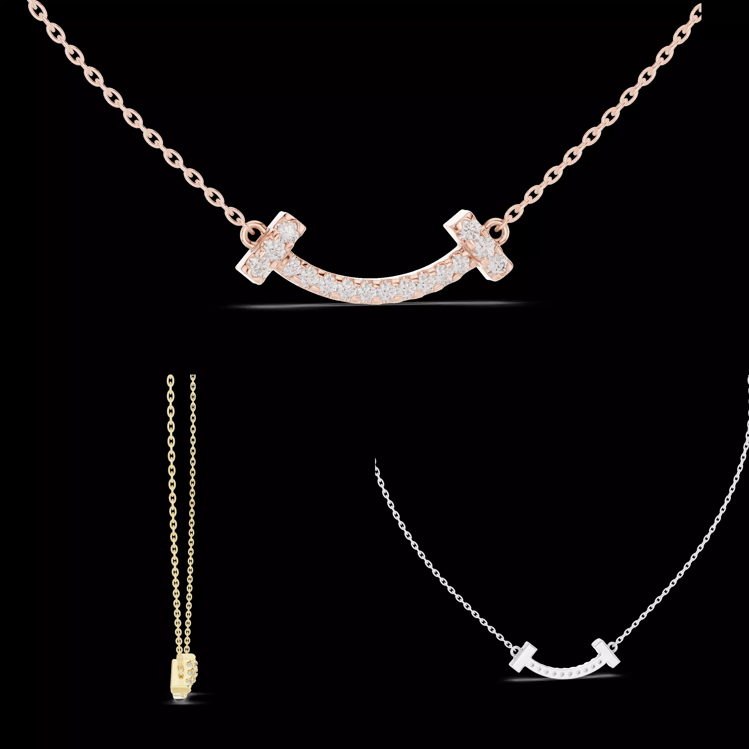 This modern curved bar pendant features a sleek arc-shaped design accented with precisely set round diamonds. The gentle curve creates a contemporary “smile” silhouette that offers a refined balance between minimal elegance and subtle luxury.