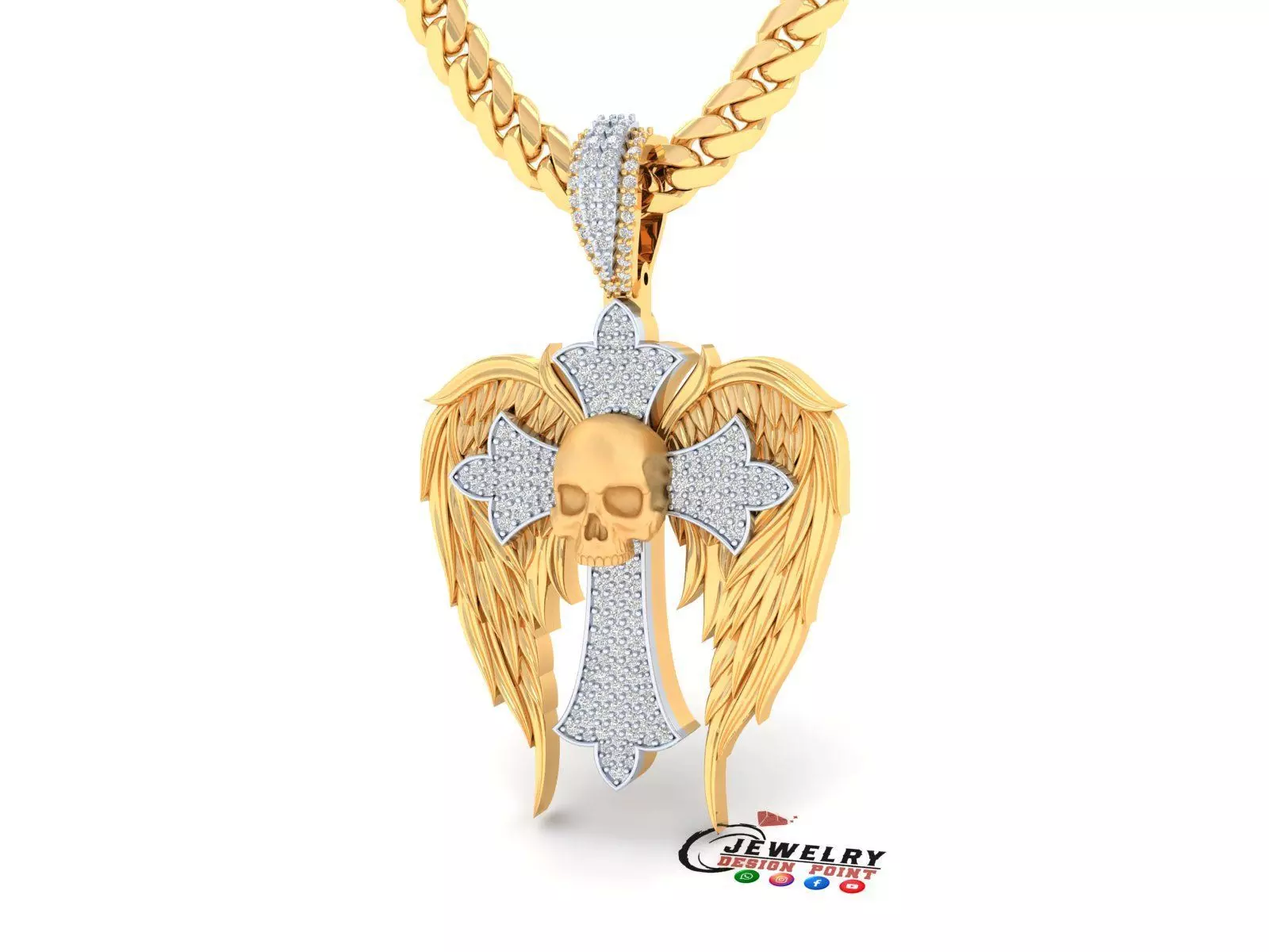 Design Number: JDPP - 031 - Angel of Death Cross Pendant (1.50in)