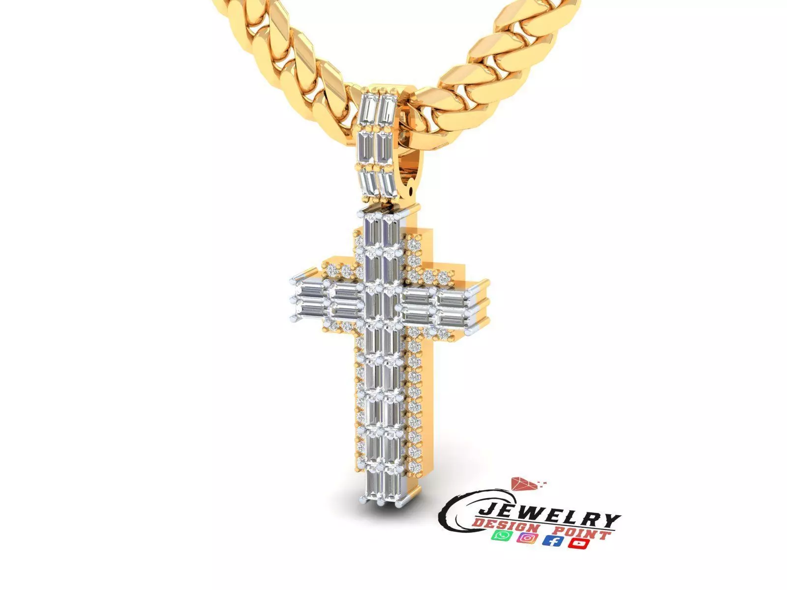 Custom Cross Diamond Pendant - Crucifixion Cross Necklace 3D print model