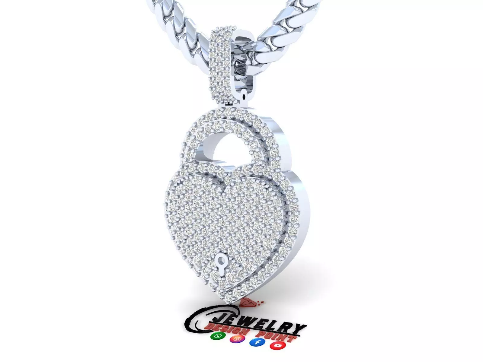 Custom Heart Love Lock Pendant - Heart Diamond Necklace 3D print model