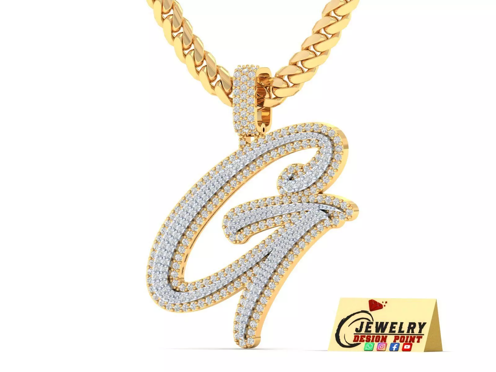 Custom Initial G Letter Diamond Pendant A to Z Alphabet Necklace 3D print model