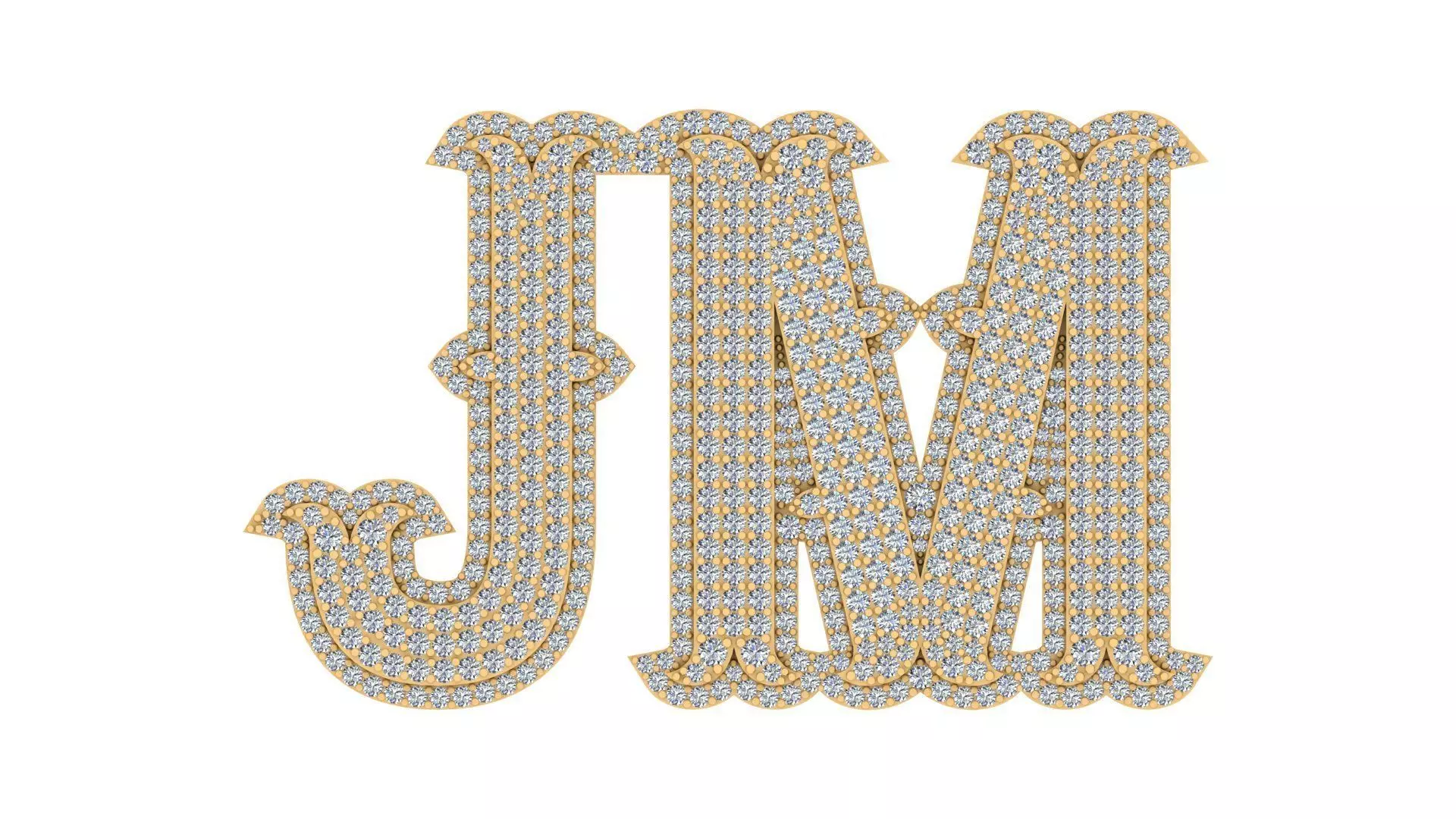 Crafted with precision and artistic flair, the pendant showcases the initials “J” and “M” in a bold, stylized font encrusted with 629 round-cut diamonds, delivering an incredible shine from every angle. Each stone is hand-set in a pavé layout to ensure a smooth, seamless sparkle across the entire surface.