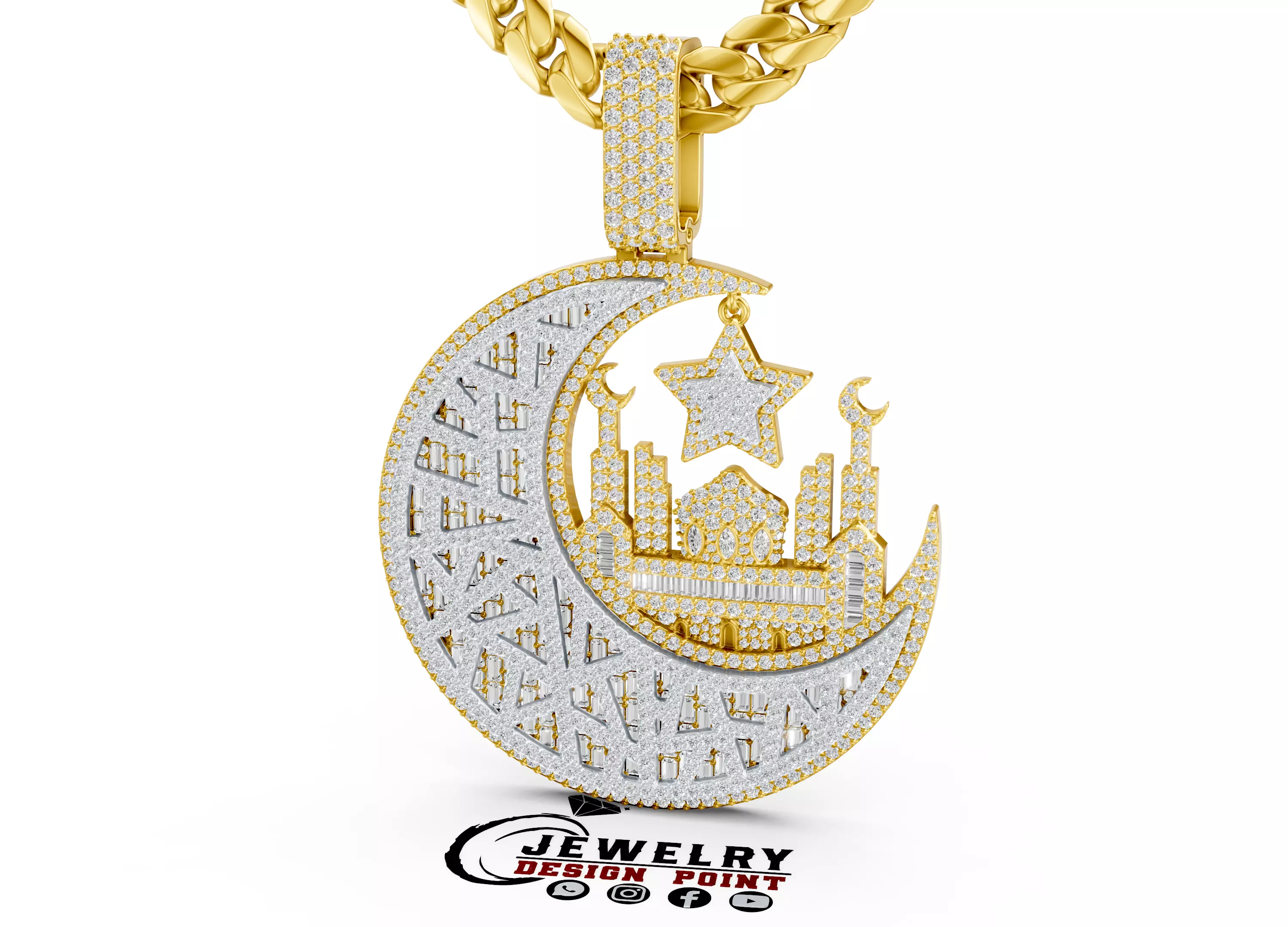 Design Number: JDPP - 115 - Moon & Mosque Pendant