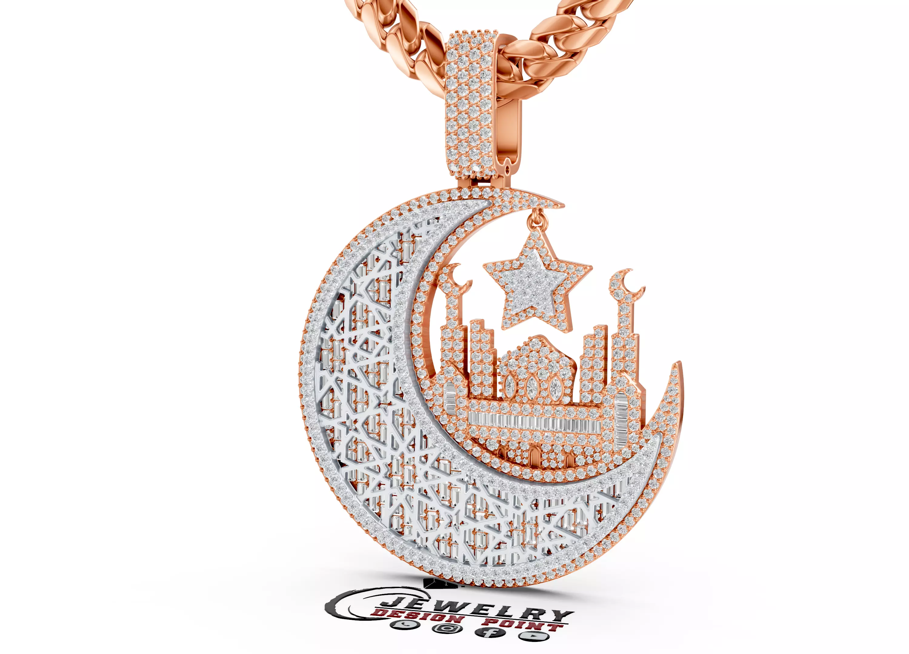 Design Number: JDPP - 115 - Moon & Mosque Pendant