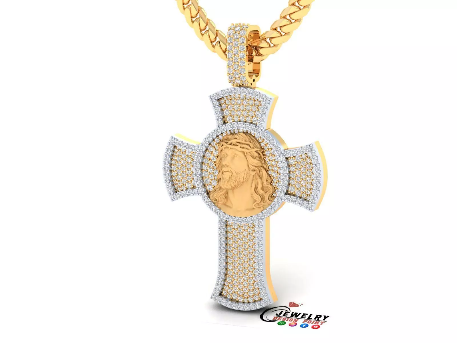 Custom Jesus Face Cross Diamond Pendant - Crucifixion Necklace 3D print model