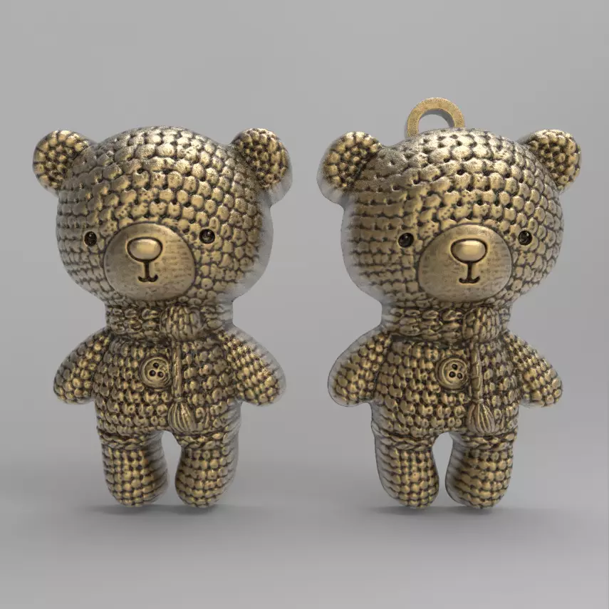 The pendant is designed with a small, sturdy loop at the top, allowing it to be easily threaded onto a necklace, keychain, or bracelet. The loop is integrated seamlessly into the bear’s design to ensure the pendant is both functional and visually appealing.