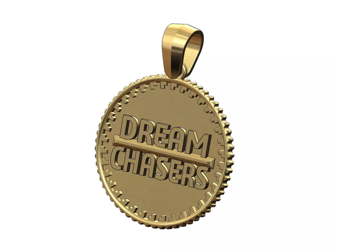 DC dream chasers notched pattern coin pendant with bail 3D print model