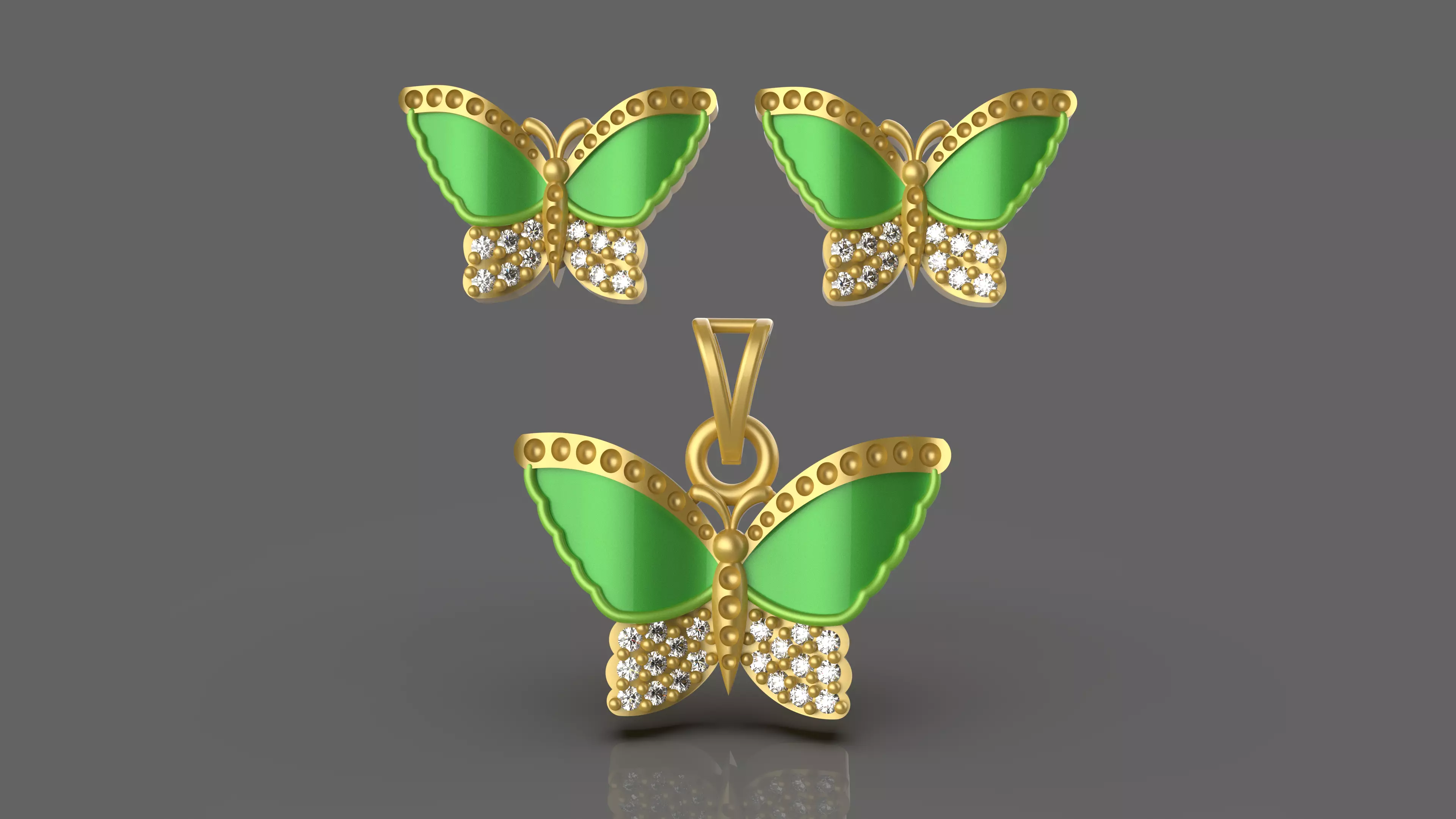 Butterfly pendant jewelry gold 3d print model_ File format: STL , OBJ , 3DMPendant Magerit butterfly All sizes of stones and products are displayed on the images. The file cointains OBJ, STL and 3Ds models.For any additional information or request like editing or if you have trouble downloading contact me. I'll be glad to help as soon as i can. The model is made in full compliance with the technical requirements for production.
