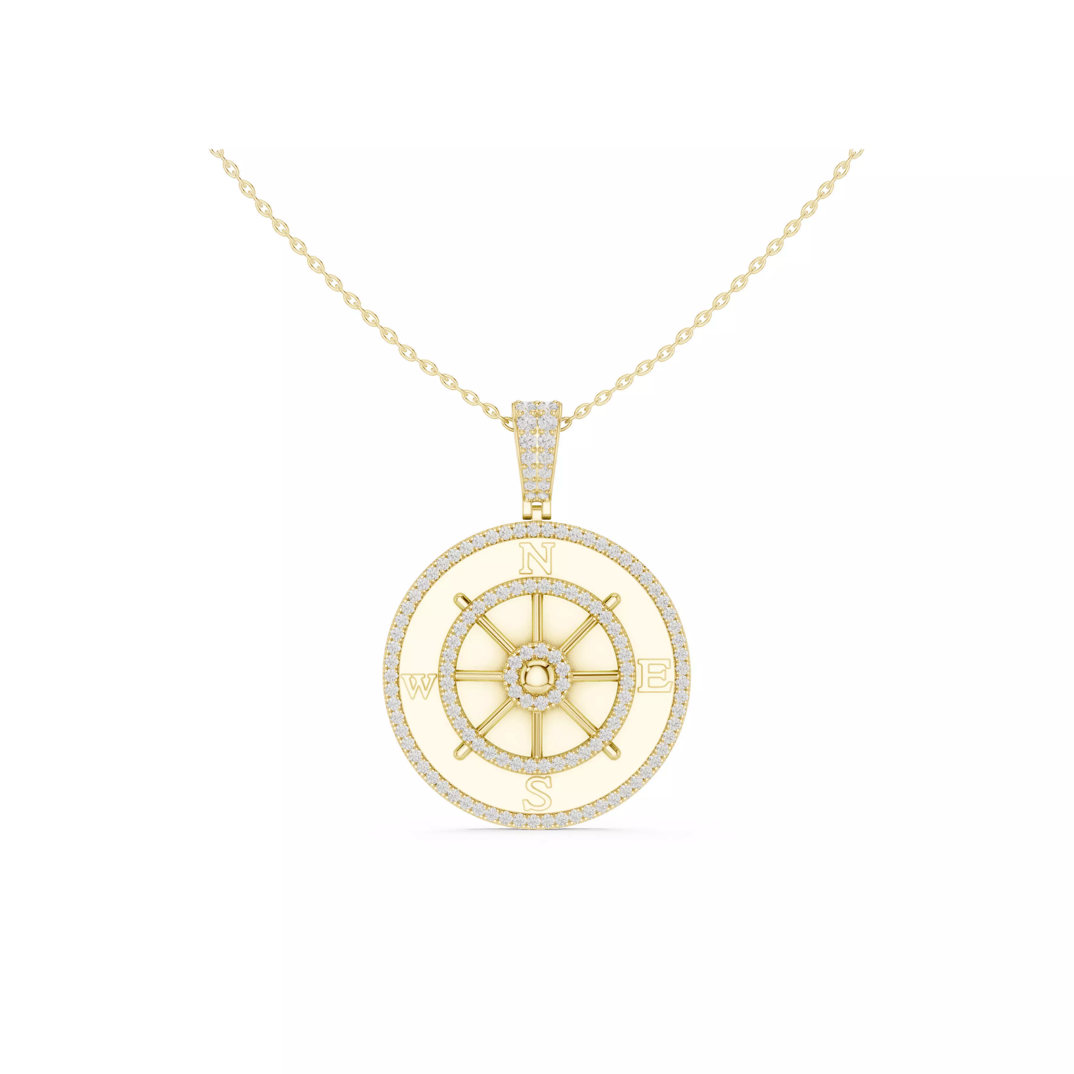 Luxury Compass Medallion Pendant 3D Model featuring a detailed nautical wheel design framed with diamond accents.