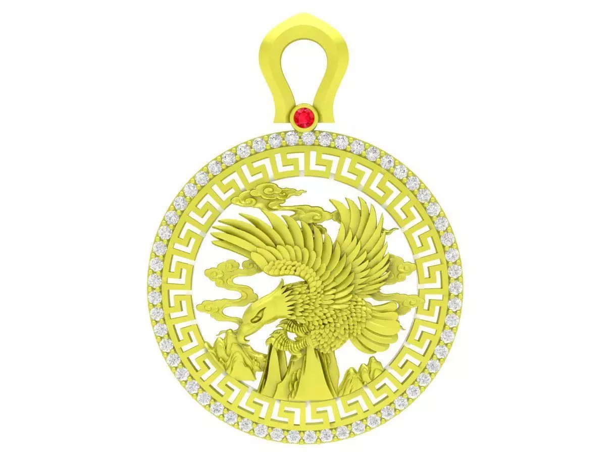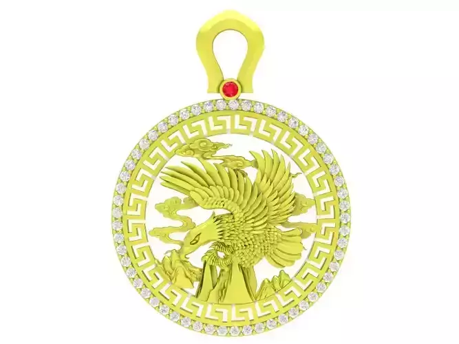 This luxury Chinese dragon medallion pendant 3D model features a powerful dragon motif enclosed within a circular frame inspired by traditional Asian symbols. The finely sculpted dragon represents strength, prosperity, and protection, while the surrounding geometric border adds a bold and elegant character to the design.