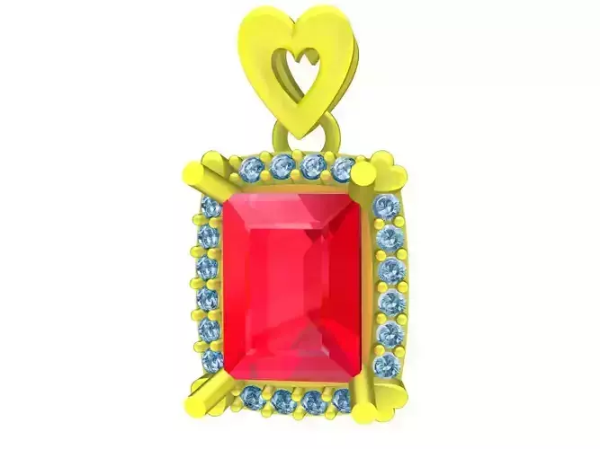 This 3D jewelry model features a luxury rectangular gemstone pendant designed with a distinctive heart-shaped bail. The center stone is a bold emerald-cut rectangle, securely held by classic prongs and surrounded by a refined pavé gemstone setting that enhances brilliance and depth.