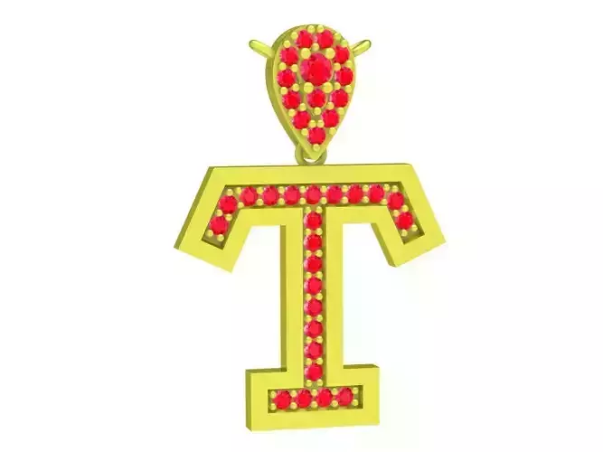 This is a professional 3D jewelry model of a luxury letter T pendant designed with a clean geometric structure and elegant diamond settings.