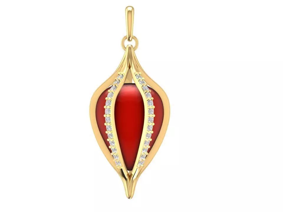 This refined pendant showcases a leaf-inspired silhouette featuring a smooth coral-style centerpiece framed by elegant metal contours and pavé-set stones.
