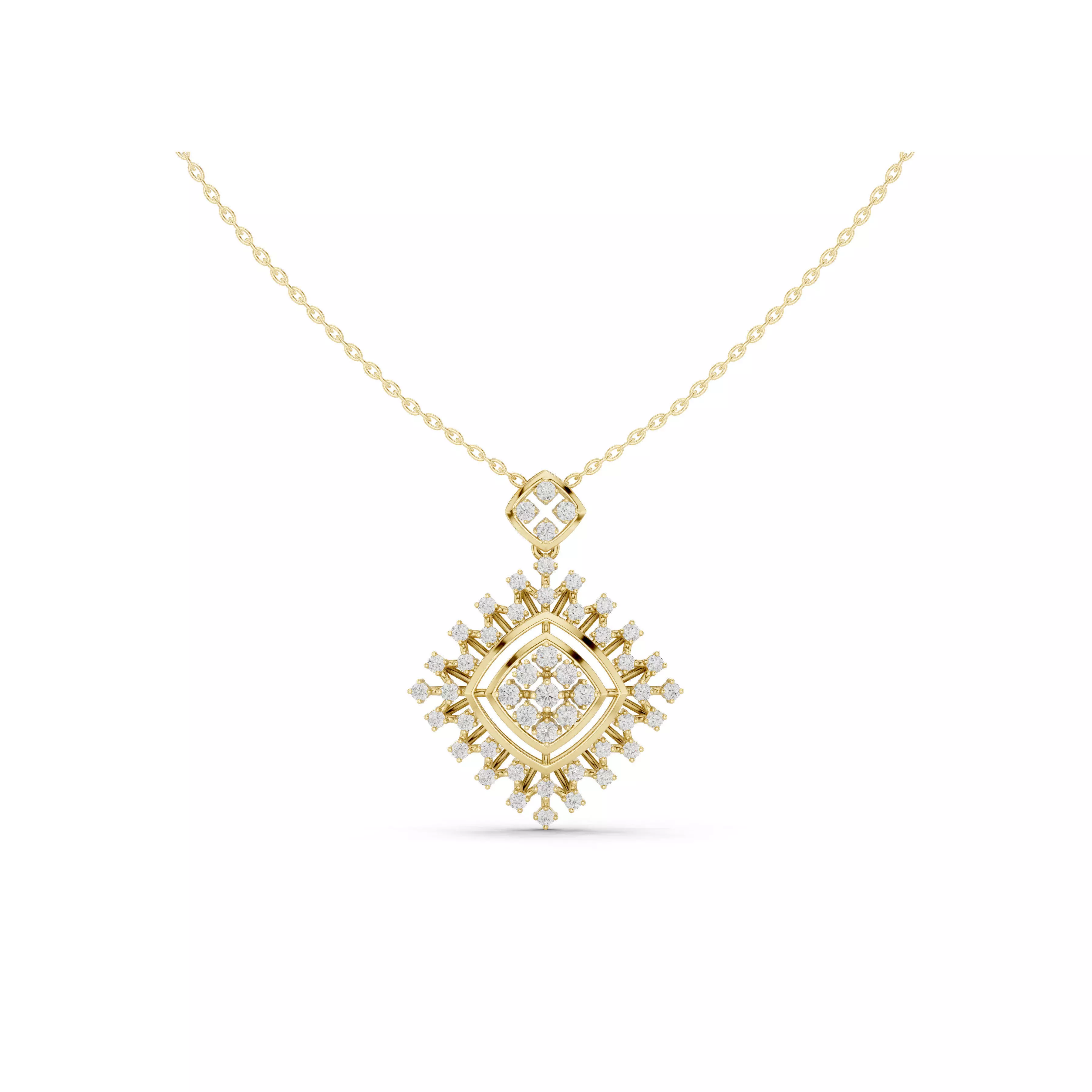 The top connector includes a square diamond cluster accent, seamlessly linking the pendant to the chain and completing the balanced architectural composition. The open gallery and precise prong placement ensure durability while maintaining a lightweight, casting-friendly structure.
