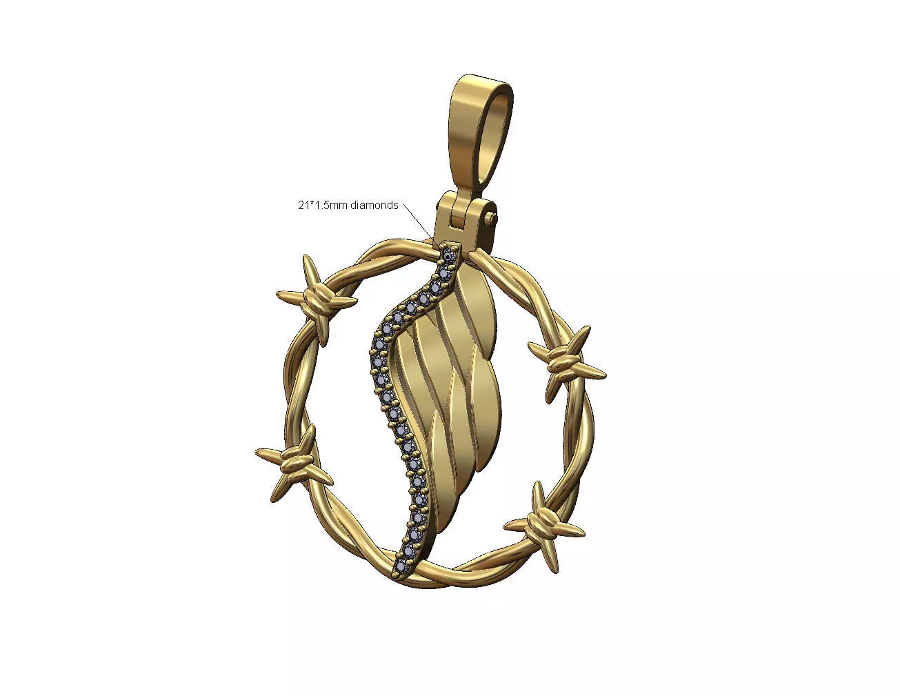 Diamond wing barbed wire pendant with bail 3D print model