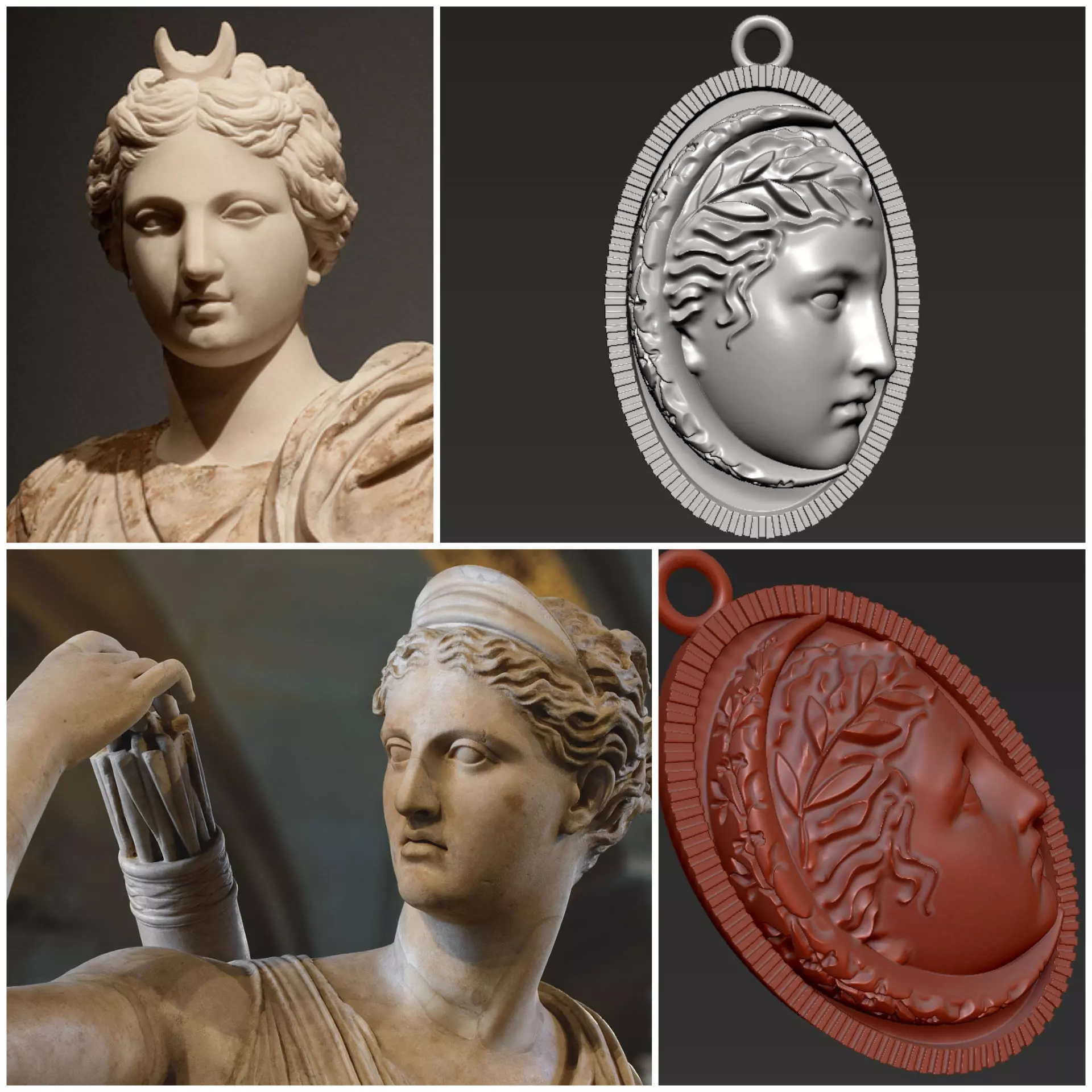 The pendant is dedicated to the goddess Artemis (Diana) and Moon.