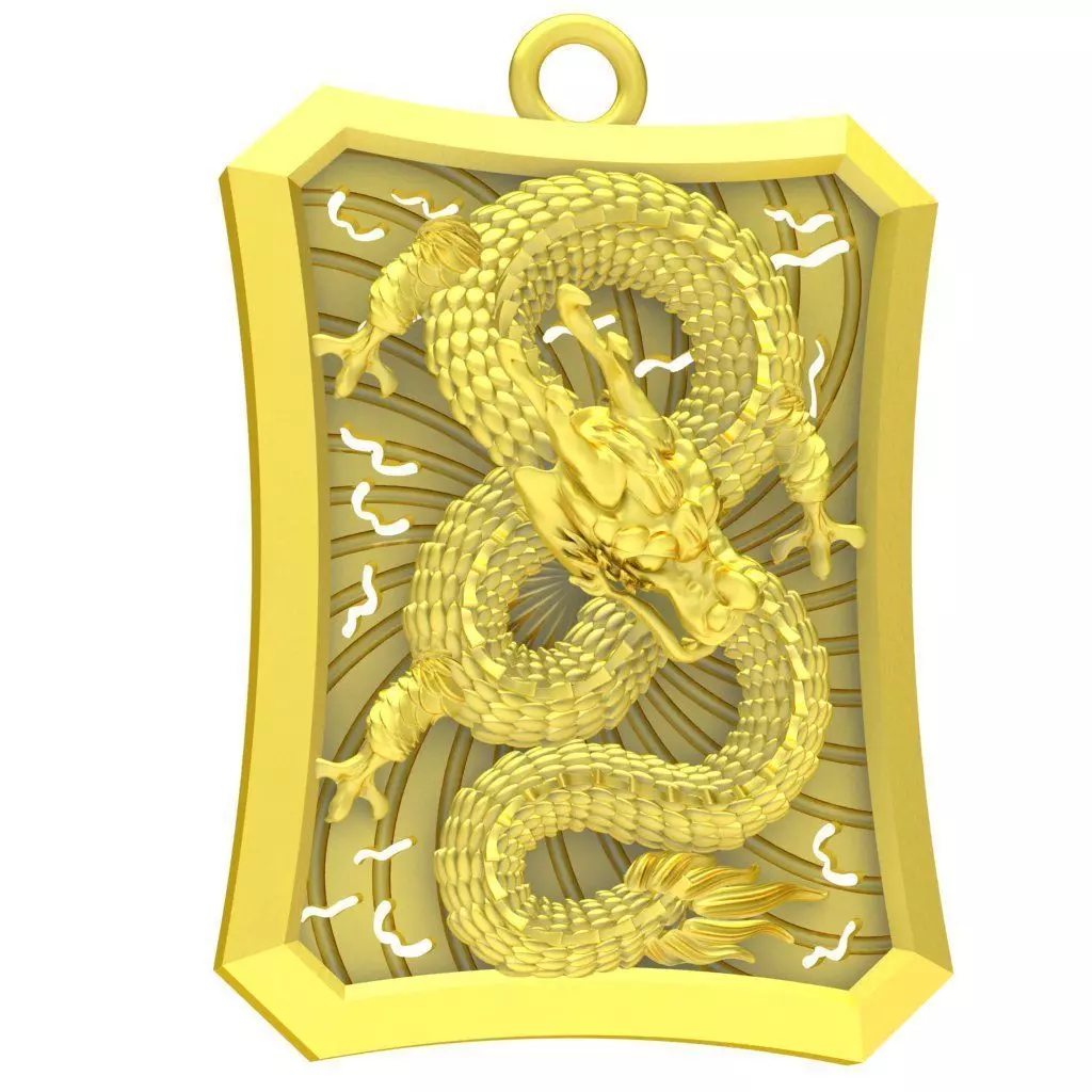 This luxury 3D dragon rectangular pendant is a highly detailed jewelry model designed for professional manufacturing, premium rendering, and custom fine jewelry development. The design showcases a powerful curled dragon sculpted in full 3D relief, positioned inside a bold rectangular frame. The intricate scales, flowing mane, and dynamic body movement create a strong visual impact and symbolize protection, strength, and prosperity.