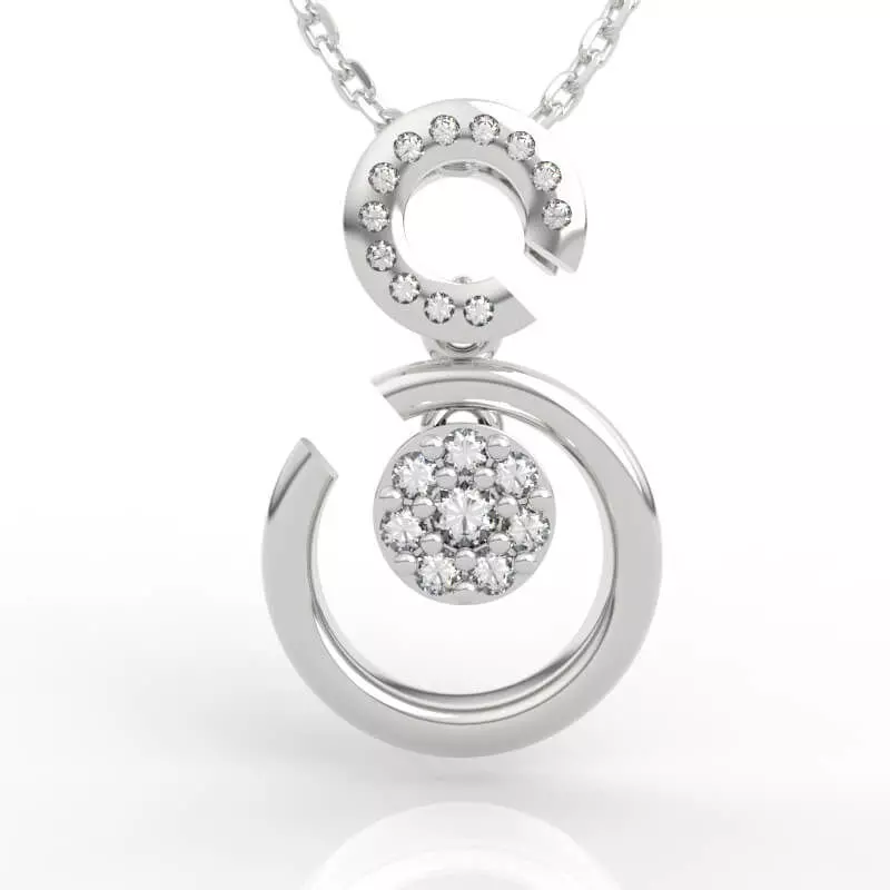 Professional JCD, 3DM, and STL file formatsTotal height: 18.08mmWidth: 11.32mmStructural depth: 4.65mm for dimensional complexityDual-layer stacked circle configurationUpper tier: small open-arc ringLower tier: large complete ring with strategic openingKinetic suspension system for floating diamond clusterAsymmetric composition suggesting infinity/figure-eight20 pre-positioned round brilliant diamond seatsTotal diamond weight: 0.117 caratsStone distribution plan:Upper arc: 12 stones at 0.9mm diameter in curved alignmentLower cluster center: 1 stone at 1.9mm diameterLower cluster surround: 7 stones at 1.3mm diameter in petal formationMicro-pavé technique for upper ring arcCluster setting for suspended lower discPrecision connection engineering for movable structureOpen-ring design on both tiers for visual transparencyHigh-polish surface optimizationContemporary deconstructivist aesthetic with wearable functionalityYour design-forward client wants jewelry that “feels alive, not static.” You’re sketching dual-ring concepts, trying to figure out how circles interact without looking like cartoon chains. Should they overlap? Stack vertically? And how do you create actual movement in a pendant without resorting to cheap dangles? Where do twenty diamonds go across two different geometric elements while maintaining visual coherence? The Floating Cluster Diamond Necklace needs architectural sophistication, kinetic engineering, and strategic stone placement simultaneously. You’re a jeweler, not a mechanical engineer with sculpture training and pavé expertise.