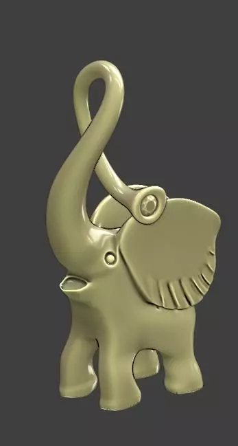The object in the image is a 3D digital representation of a tusked elephant with a small gemstone in the mouth of its trunk.Property: brings wealth and abundance to whoever wears it!