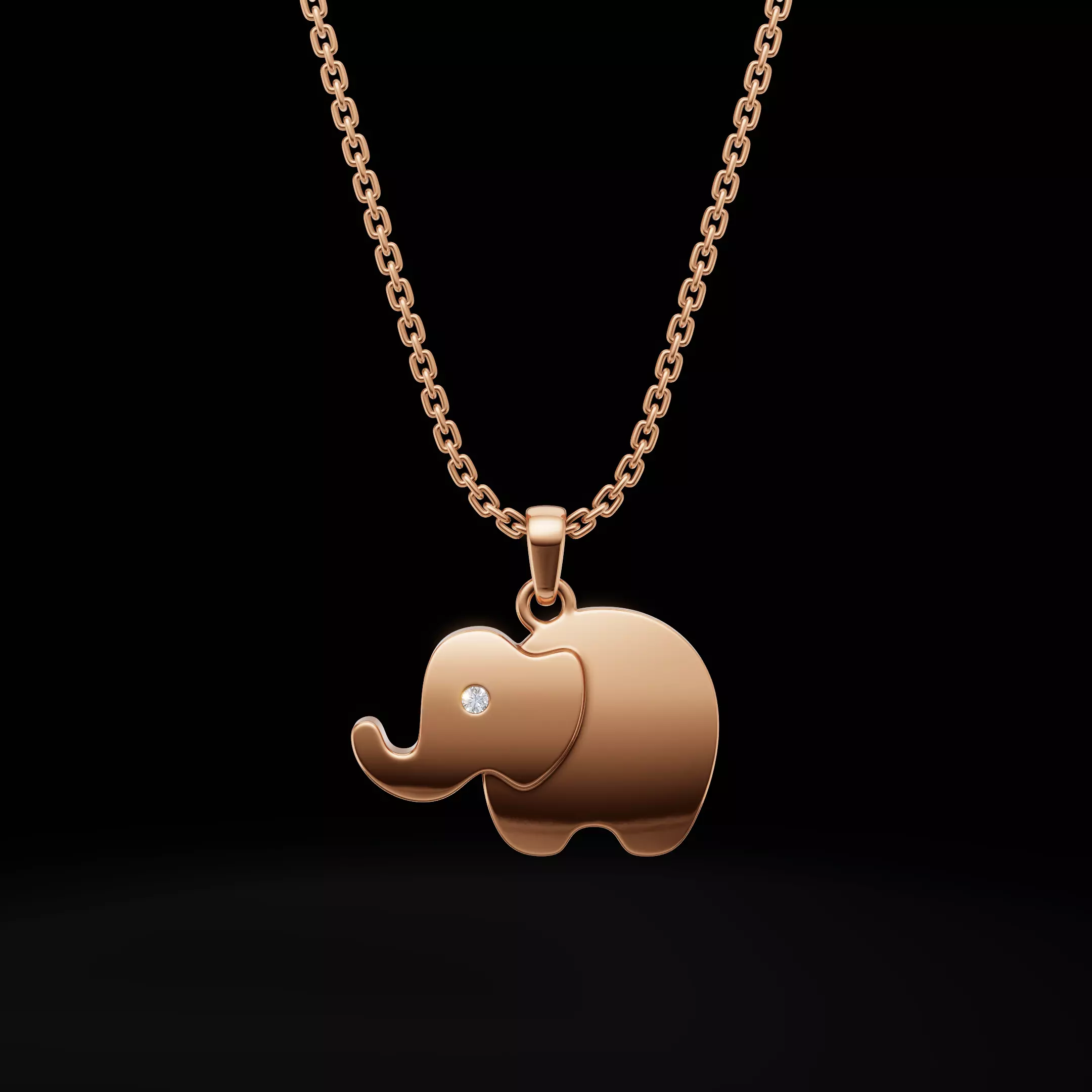 High-quality 3D model of an elephant pendant, designed for jewelry production, 3D printing, and rendering.The model has a smooth, modern silhouette with a single 1.5mm round stone setting as the eye.