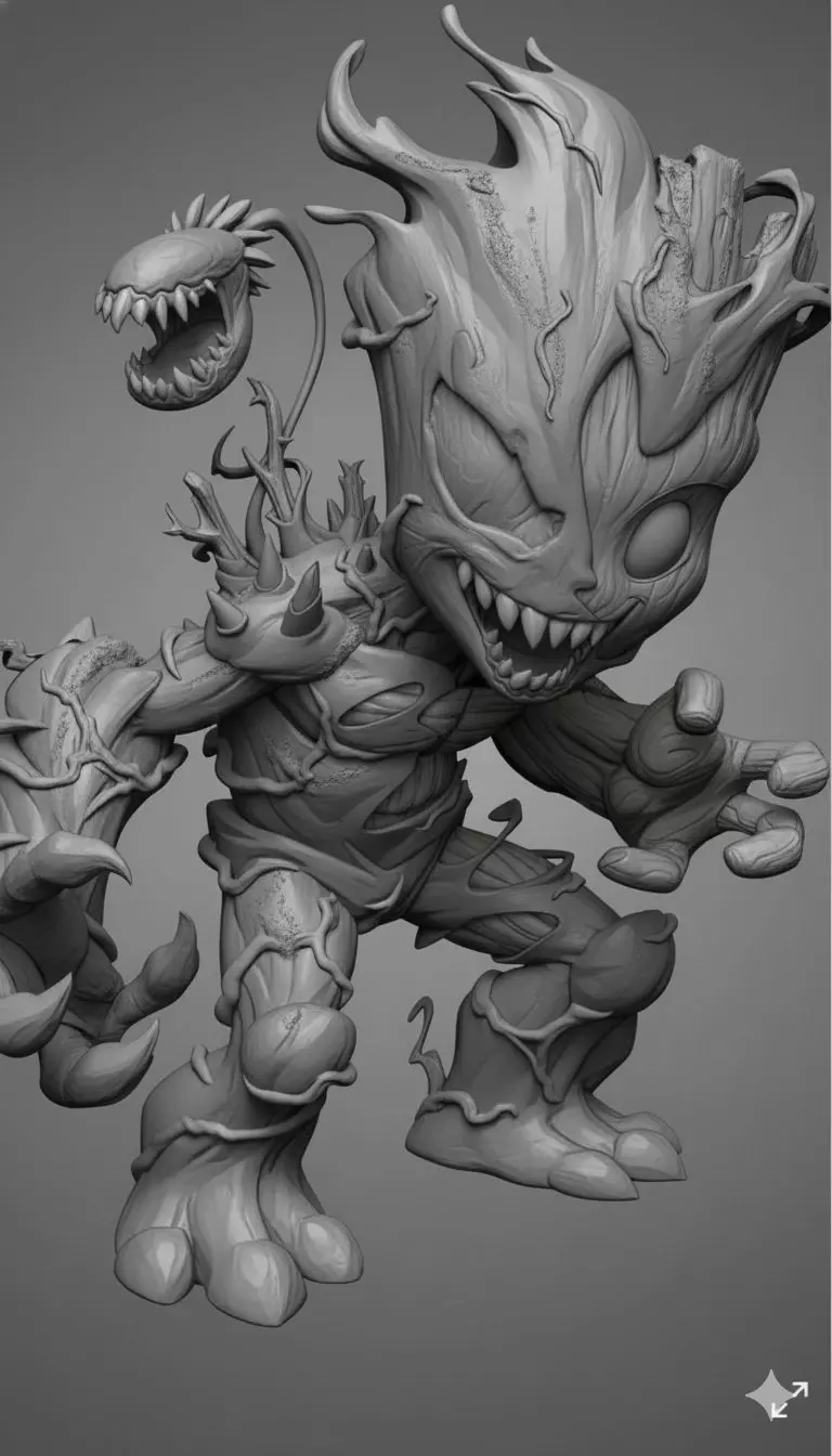 This Evil Tree Monster Hip Hop Pendant 3D model features a fierce and stylized forest creature with sharp teeth, twisted wood textures, vines, and an aggressive pose. The design has a strong character look that blends horror and cartoon style, making it perfect for unique hip hop jewelry, statement pendants, and custom iced out pieces.