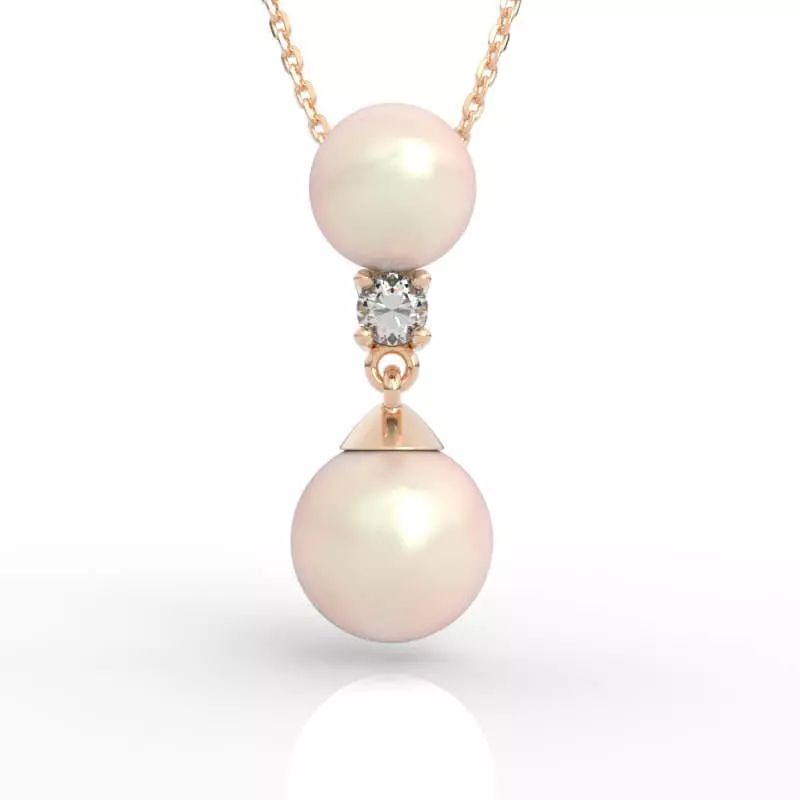 The pendant stretches 24.02mm in total length, structured with a smooth upper pearl, a sparkling prong-set diamond, and a dramatic larger pearl anchoring the design at the bottom. This gradient of proportions creates a natural visual flow—calm at the top, powerful at the base—making the design ideal for refined, modern jewelry lines.