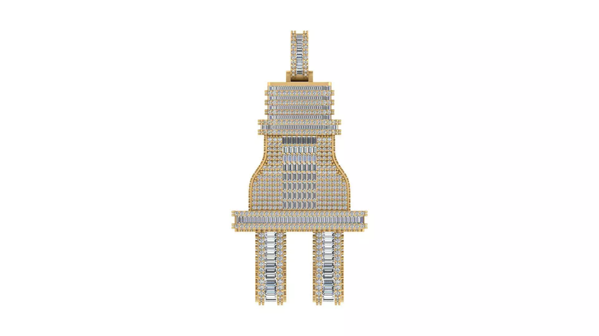 Introducing the Exquisite Diamond-Encrusted Plug Pendant, a bold and unique statement piece that merges luxury with creativity. Designed in the shape of an electrical plug, this pendant is meticulously crafted in solid gold and adorned with an array of brilliant diamonds, giving it a striking and opulent appeal.