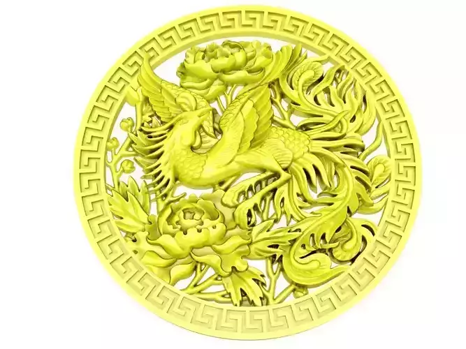 The circular frame is decorated with a classic geometric border, enhancing the cultural and ornamental value of the piece. The layered relief carving creates strong depth and visual impact, making this design suitable for luxury men’s jewelry, feng shui pendants, or statement accessories.