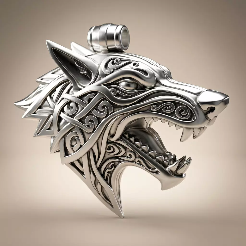 The pendant features the powerful Fenrir wolf, one of the most iconic creatures in Norse mythology. Fenrir is the legendary giant wolf destined to play a central role in Ragnarök. The design captures the fierce expression of the mythical beast, symbolizing strength, power, chaos, and destiny.