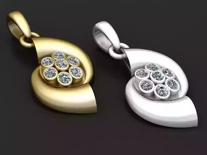 This pendant design is the epitome of elegant simplicity fused with radiant charm. Crafted in teardrop-shaped contours with both gold and white metal finishes, the pendant features a beautifully raised floral cluster of seven brilliant-cut diamonds in the center, giving it a harmonious and symmetrical appeal. The smooth, polished surface reflects light effortlessly, highlighting the contrast between the outer form and the clustered sparkle within. Ideal for everyday wear or special occasions, this piece effortlessly bridges classic grace with modern sophistication.