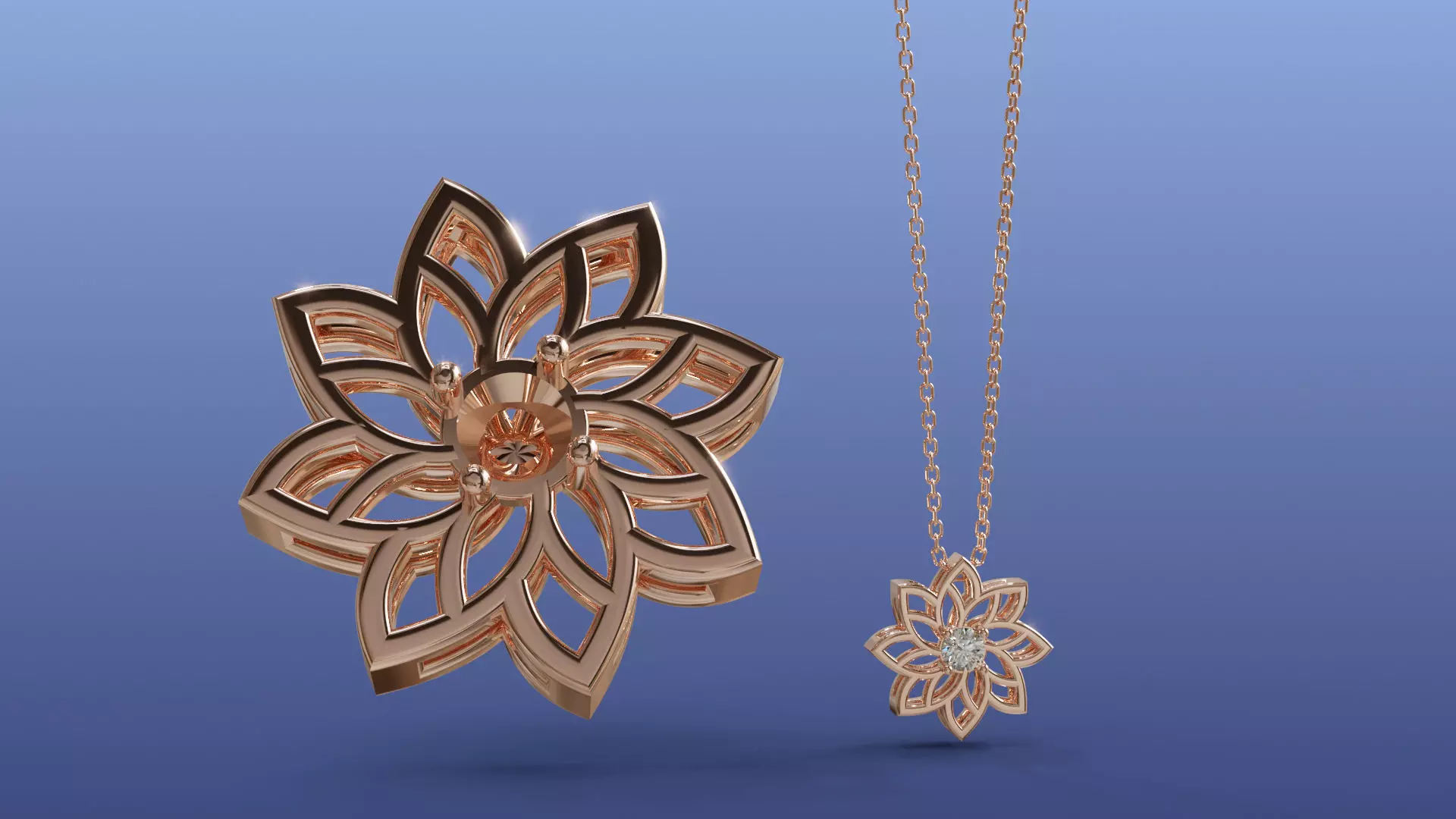 DescriptionThis high-quality 3D jewelry CAD model features a sophisticated Geometric Floral Mandala Pendant, blending organic inspiration with modern architectural precision. The design showcases an eight-petaled lotus-style motif with intricate overlapping latticework, creating a sense of depth and movement. At its heart lies a prominent 3.0mm center stone setting, held securely by four elegant prongs. This digital asset is optimized for professional jewelry manufacturing, offering a balanced aesthetic that works perfectly in yellow gold, white gold, or platinum.