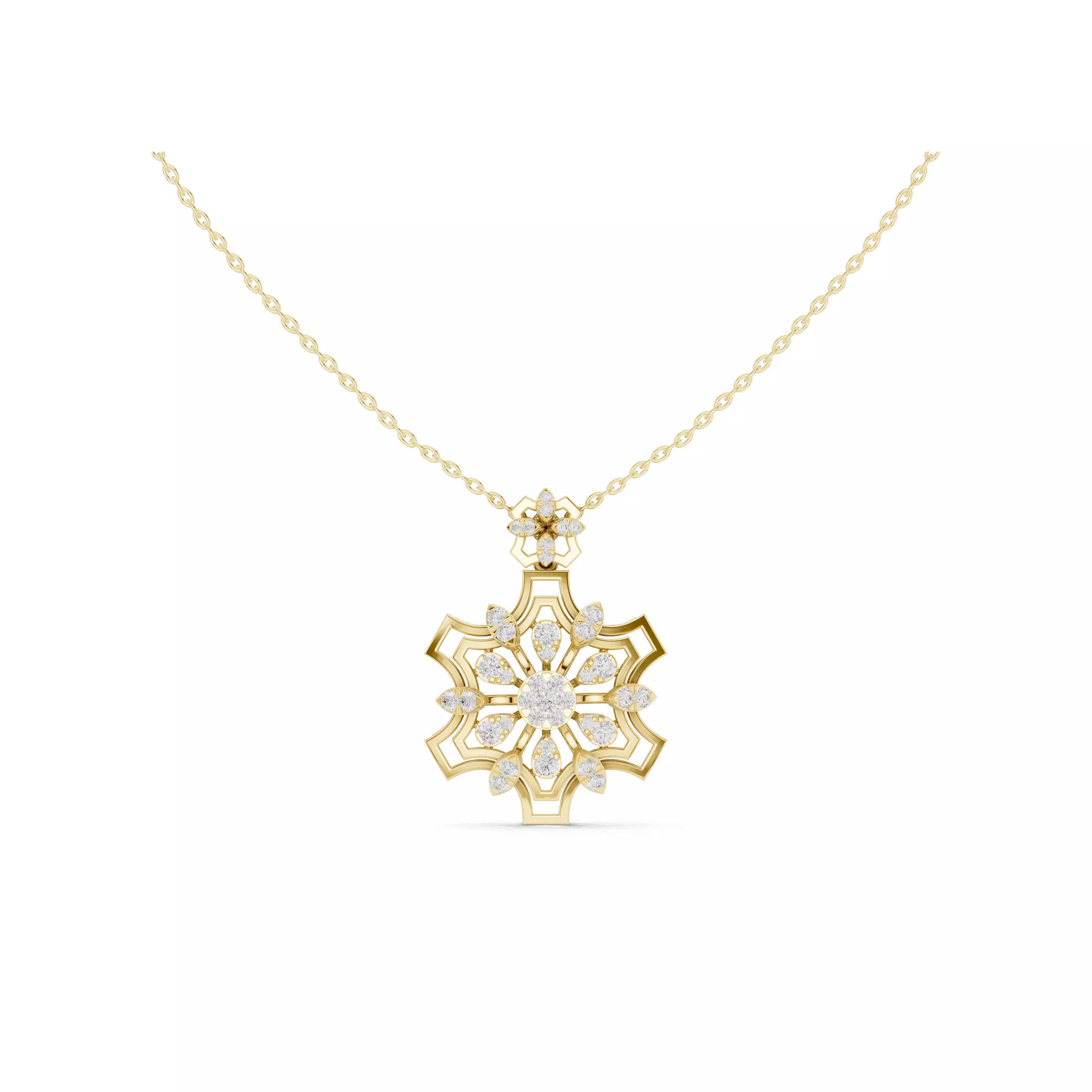 geometric floral pendant 3d model, star flower diamond pendant cad, pear diamond flower necklace stl, luxury floral pendant 3dm, designer flower pendant 3d print, geometric diamond necklace cad model
