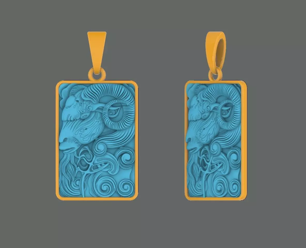 Zodiac Aries Goat Engraved Jewelry Pendant 3D print model