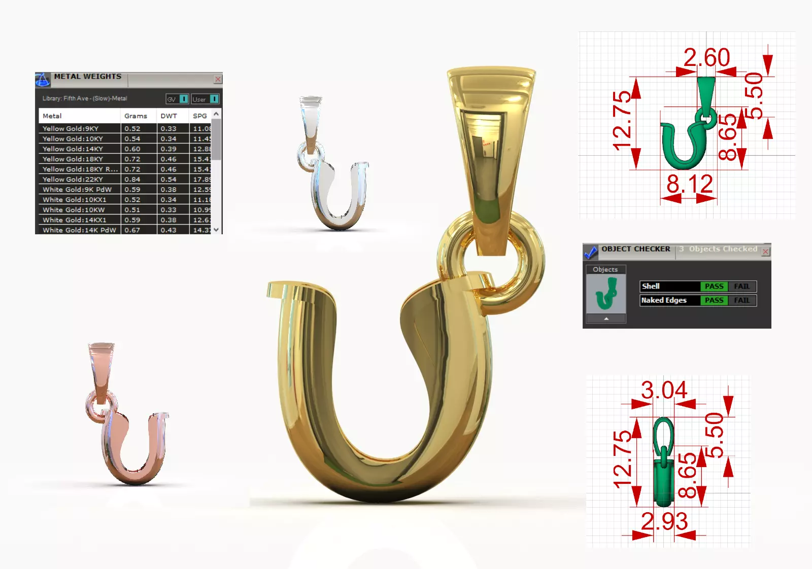 3D U-Shaped Design: This pendant is designed in the form of an letter U or open semicircle, which has considerable volume and thickness.