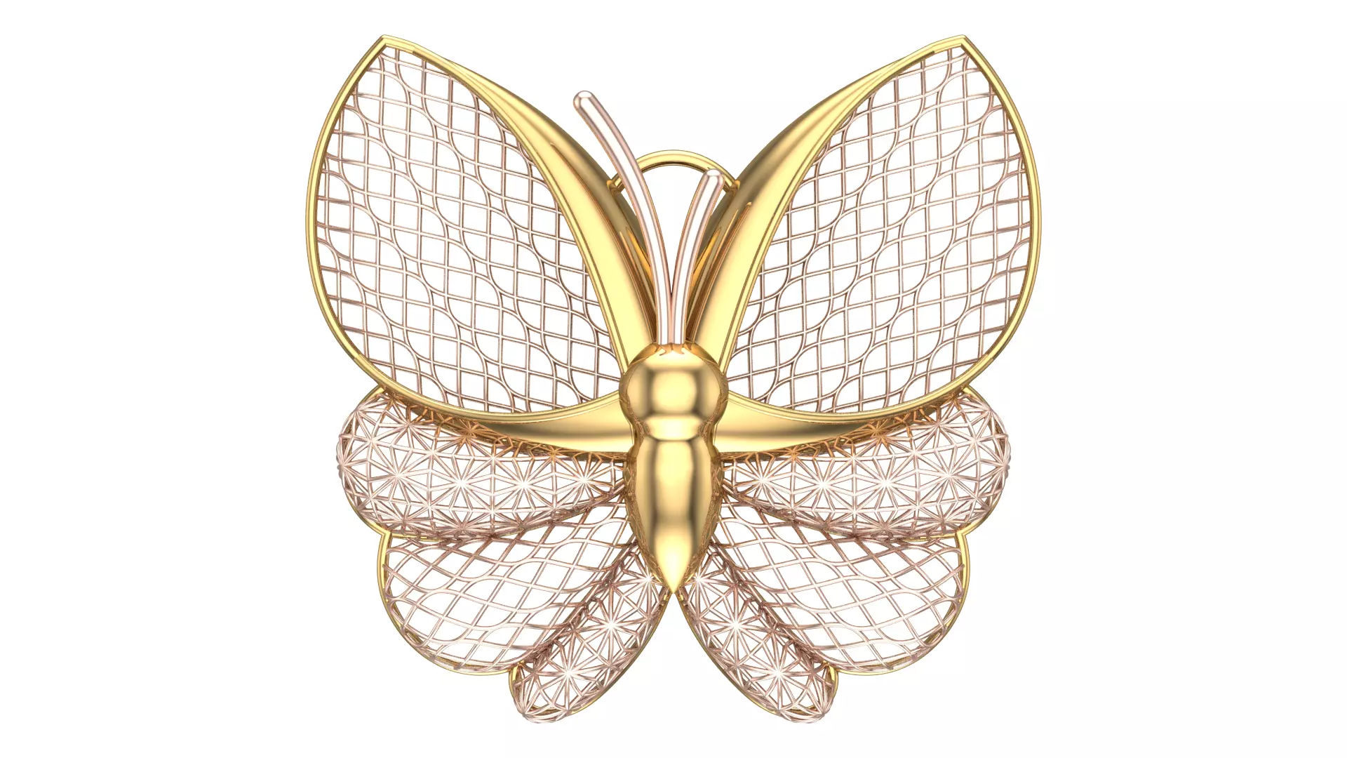 - Rendered in gold and rose tones