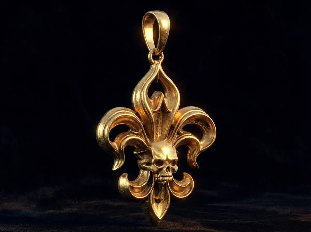 Intricate Detailing: The transition between the smooth curves of the Fleur De Lis and the weathered, organic texture of the skull is optimized for lost-wax casting, ensuring no loss of character during the metal finishing stage.