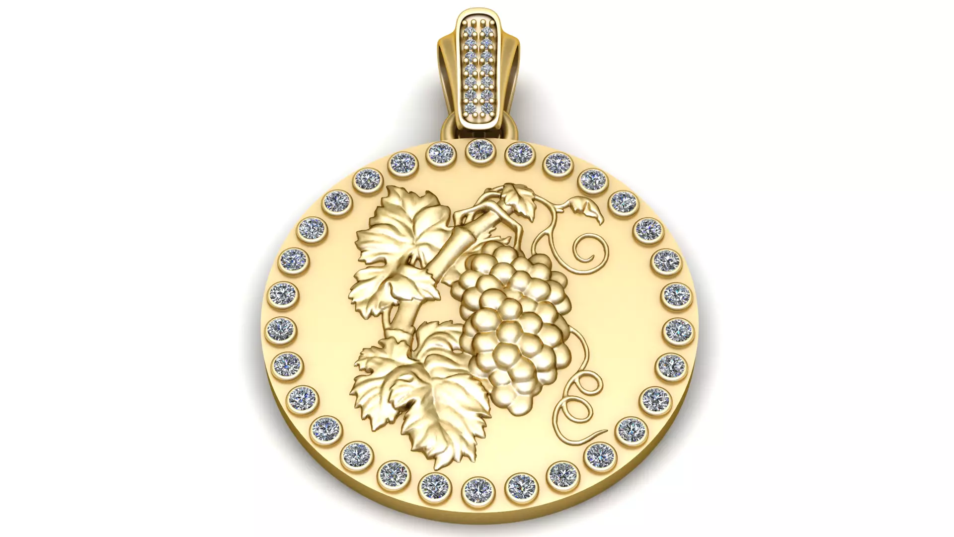 Grape Vine Pendant with Diamond Border 3D Printable Jewelry 3D print model