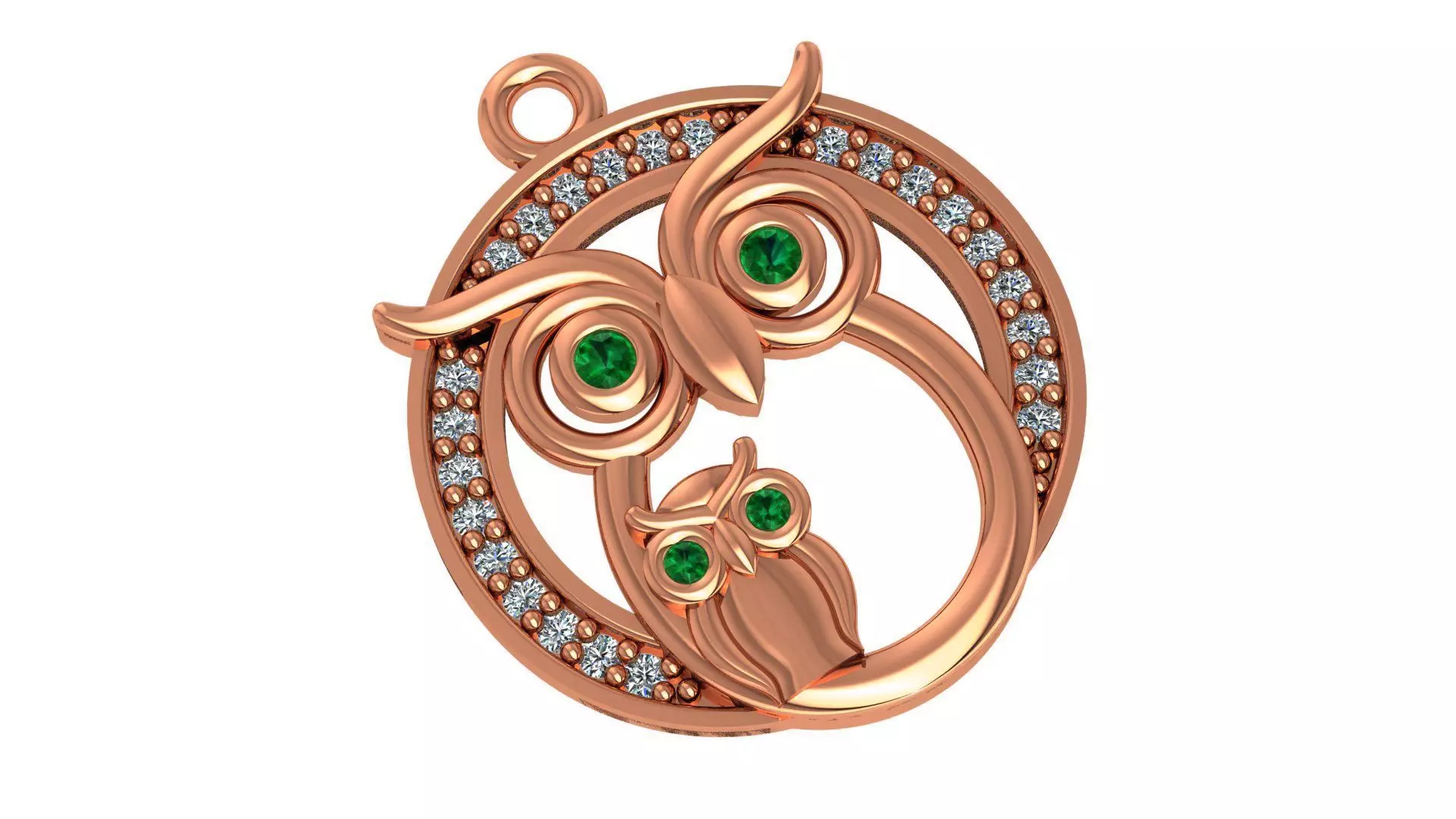 Green Eyed Owl Mothers Love Pendant Necklace 3D print model