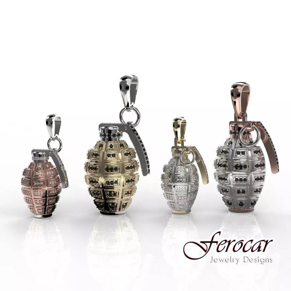 This a digital file for 3D print and production.FBX file with render color for blender.this is the redesign of my preview model less weigh more detail. Two designs in two different sizes of this amazing grenade pendant for a total of 4 models.Each design comes in a separated folder with a 3dm file, gem maps & specs info.also the design have been made in multiple parts so you can customized the gold colors.all the files are in 3DM format so you can open it in rhinoceros any other format request please contact me.
