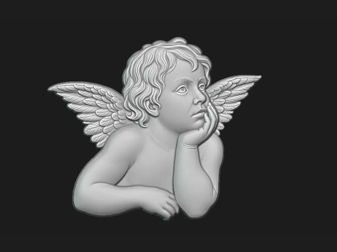 This 3D model features a detailed guardian angel in bas-relief style, suitable for resin printing, lost-wax casting, and custom pendant production.